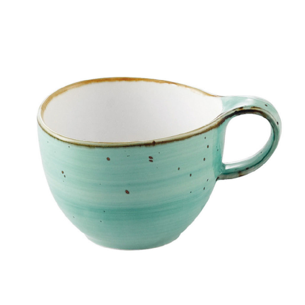 A commercial cup is a durable, food-safe beverage container used in high-volume foodservice operations such as cafes, restaurants, and hotels. Made from materials like porcelain or ceramic, they are designed to withstand frequent handling, thermal stress, and dishwasher cleaning. The CAC China TUS-1-TQS Tucson Cup features high-quality porcelain construction, a 8-1/2 oz. capacity, reactive glazed turquoise finish, and compatibility with microwave and oven use, making it well-suited for busy hospitality settings requiring reliable serviceware and consistent presentation.