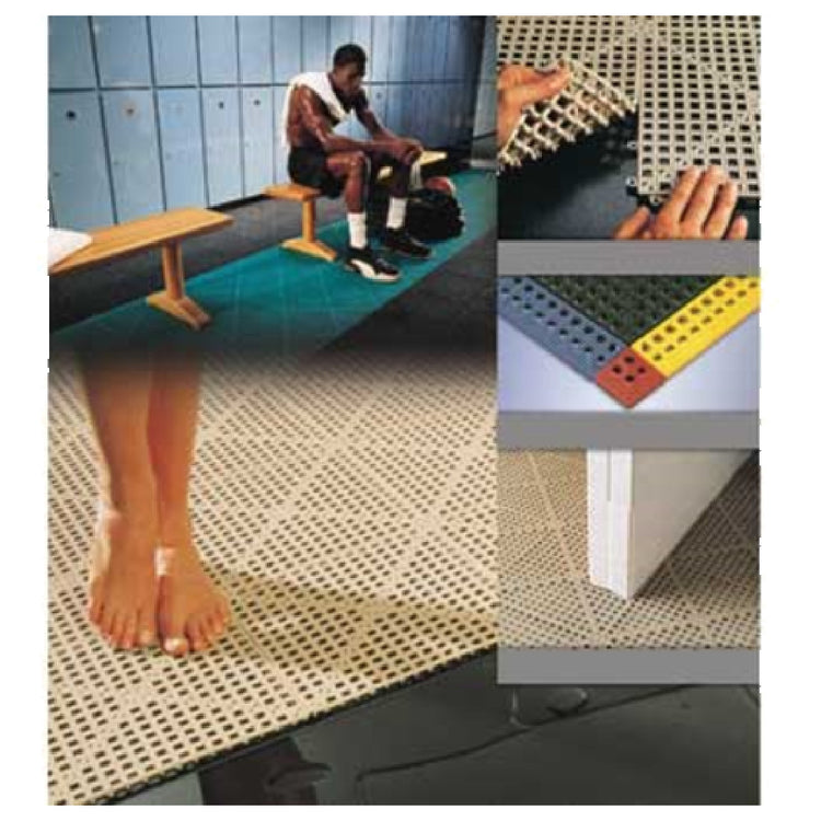 A commercial floor mat is a durable, slip-resistant surface designed for high-traffic environments such as foodservice, hospitality, and industrial kitchens. The Cactus Mat 2554-T is a modular, vinyl interlocking tile system that ensures safety, hygiene, and efficient water drainage. Installed in food prep stations, locker rooms, or wet work areas, these tiles support medium-volume workflows while simplifying cleaning and maintenance. With its flow-through design and antimicrobial properties, it is optimal for environments emphasizing cleanliness and safety.