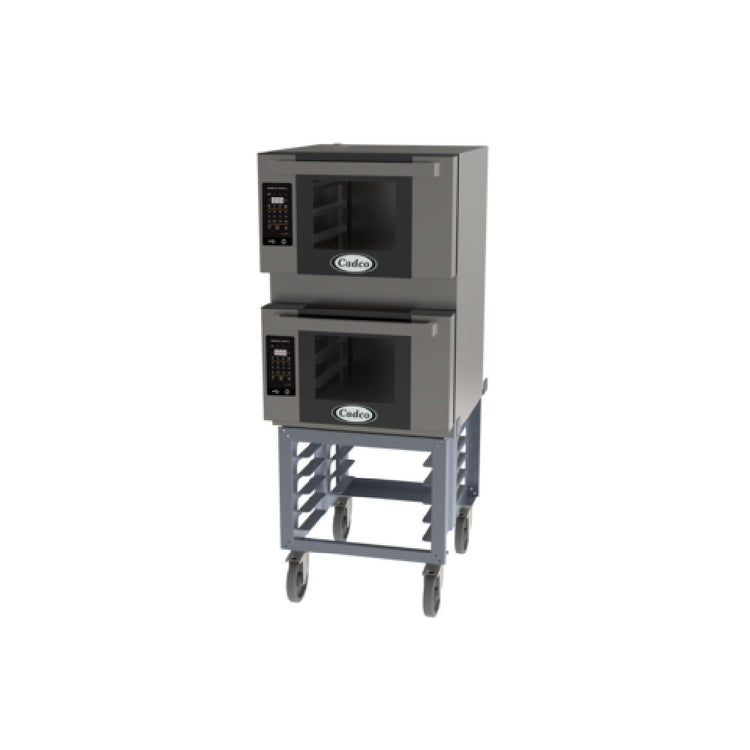 The Cadco BLS-3HLD-2 Bakerlux™ LED Heavy-Duty Convection Oven offers high-capacity double decks with digital touch control for accurate time, temperature, and humidity adjustments. Its stainless steel exterior and interior enhance durability, while the open base stand facilitates seamless workflow integration. The unit's reversible fan and variable fan speeds enhance airflow consistency, improving baking quality. Designed for ease of maintenance, it includes a water connection system and an interior LED light for better visibility. Perfect for multi-product baking in commercial foodservice kitchens, it supports complex baking protocols, including humidity and multiple-step programming.