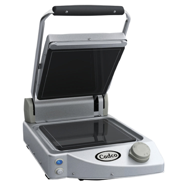 Cadco CPG-10F Single Clamshell Grill Black Glass-ceramic Grill Surfaces Smooth Top & Bottom Plates