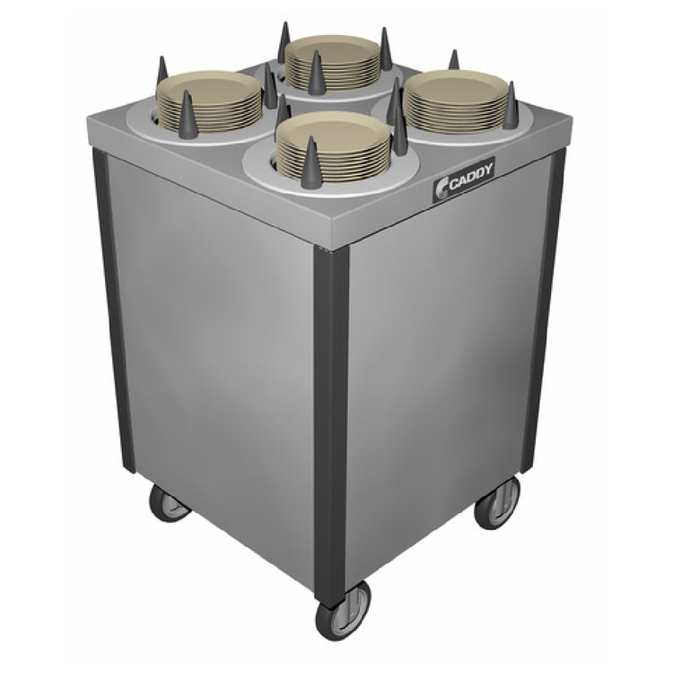 The Caddy CM-S-204 Caddy Magic Dish Dispenser Cabinet Style Unheated is a commercial-grade dish dispensing solution designed for high-efficiency plate management in foodservice environments. This mobile, cabinet-style unit features four self-leveling adjustable dispensing cylinders capable of handling dishes with diameters ranging from approximately 5-7/8" to 7-1/4". Crafted with a stainless steel top and plastic corner bumpers, it provides durability and ease of maintenance. The unit is built to facilitate quick, organized dish distribution in busy kitchens, buffet lines, or cafeteria settings, with dimensions of 23.5" width, 23.5" depth, and 34" height, making it suitable for use in compact yet high-volume foodservice operations.