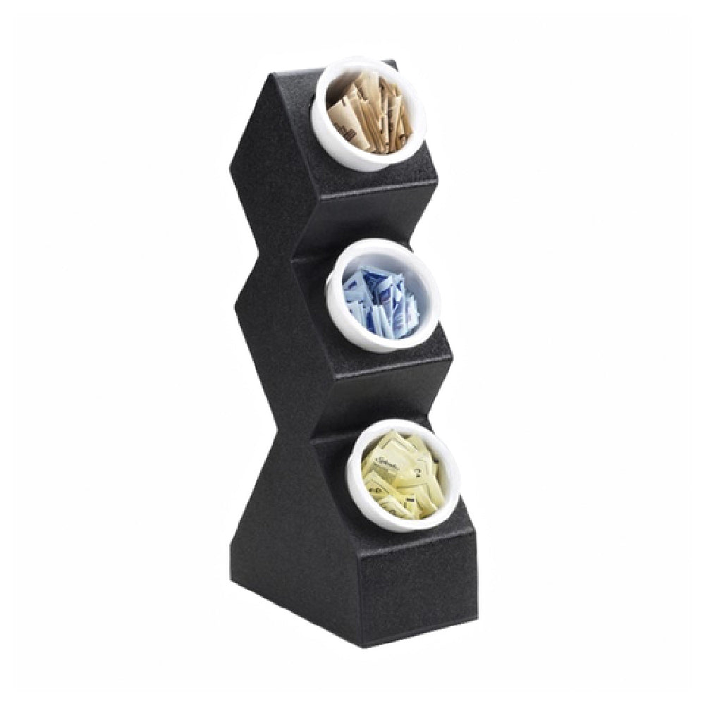 The Cal Mil 1016-3 utilizes impact-resistant ABS plastic in a matte black finish, measuring 5-1/2 inches in width, 8 inches in depth, and 20 inches in height. Its lightweight construction weighs approximately 12 pounds, supporting three cylinders—sold separately—in a vertical, three-tier configuration. Designed for high durability and ease of cleaning, it features a simple disassembly process for maintenance. The display supports standard countertop heights, with a focus on longevity and functionality for high-traffic foodservice use. While specifics on electrical requirements are not applicable, its design emphasizes impact strength, stability, and ease of sanitation, ensuring compliance with typical commercial standards.