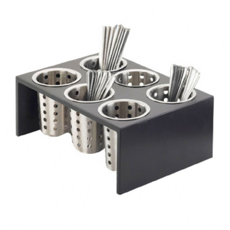 Cal Mil 1425-6-96 16 Inch Bamboo Utensil Holder with 6 Cutouts Black Wood
