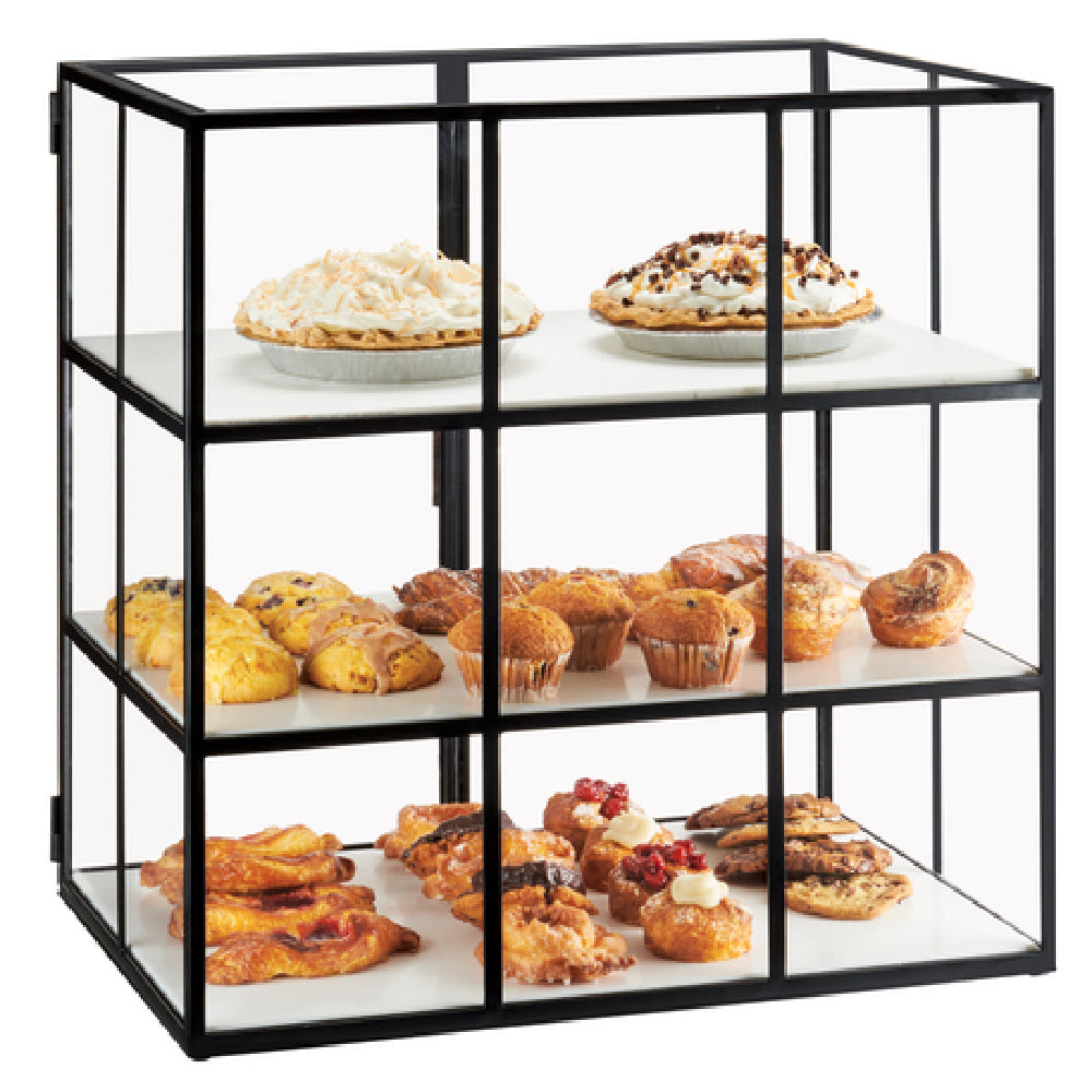 Cal-Mil, 22116-13, Monterey Display Case, 26-1/2"W x 17"D, 26-3/4"H, 3-tier, countertop, dual hinged doors with handles, (3) white composite shelves, acrylic & steel
