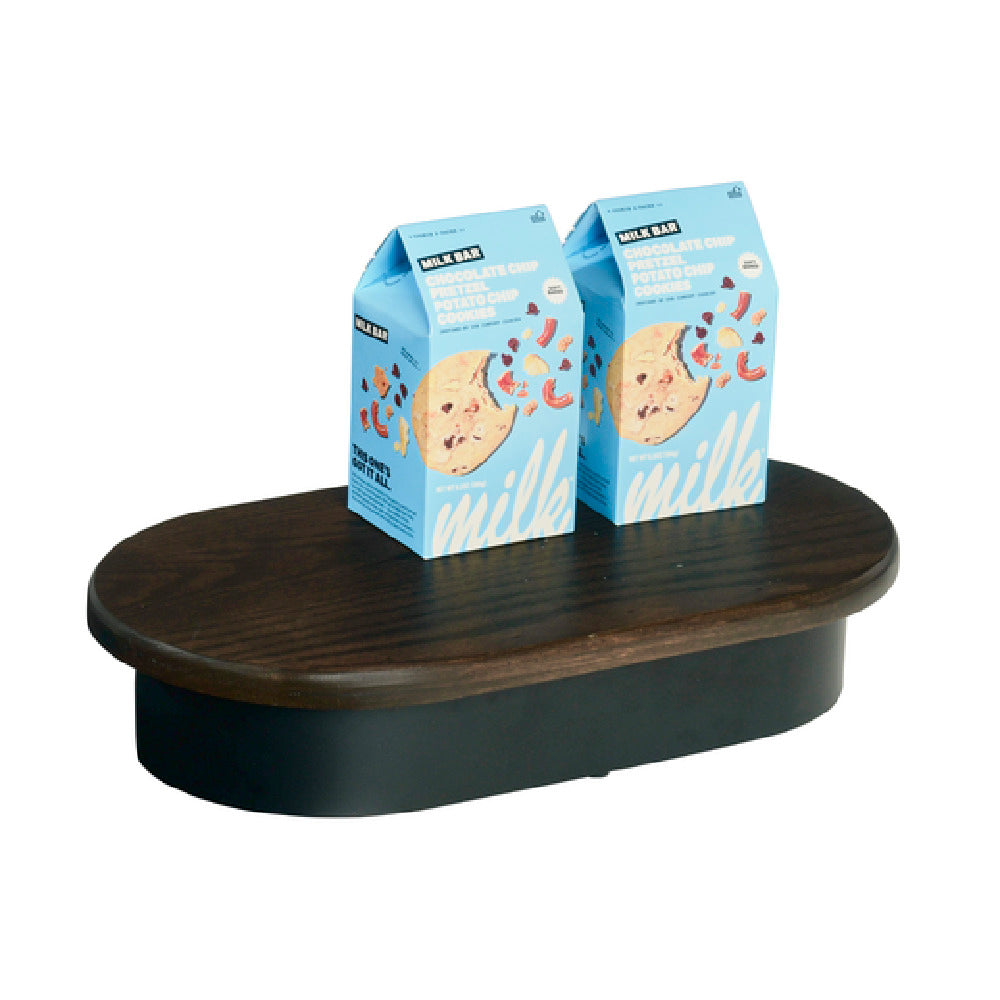 Cal-Mil, 22411-3-112, Heritage Riser, 18" x 10" x 3"H, oval, dark brown oak top and black metal base