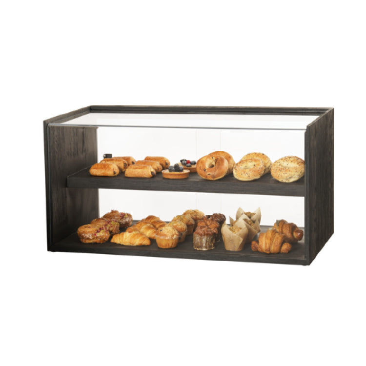This display case offers a rugged acrylic and metal construction with hinged front doors for quick access. Its precise dimensions and finish facilitate flexible placement in busy foodservice settings, supporting product visibility and sanitation. Designed to withstand daily handling, it simplifies cleaning and ensures presentation consistency for counter-level displays. Ideal for high-traffic bakery or pastry displays, it enhances workflow efficiency through easy maintenance and robust build quality.