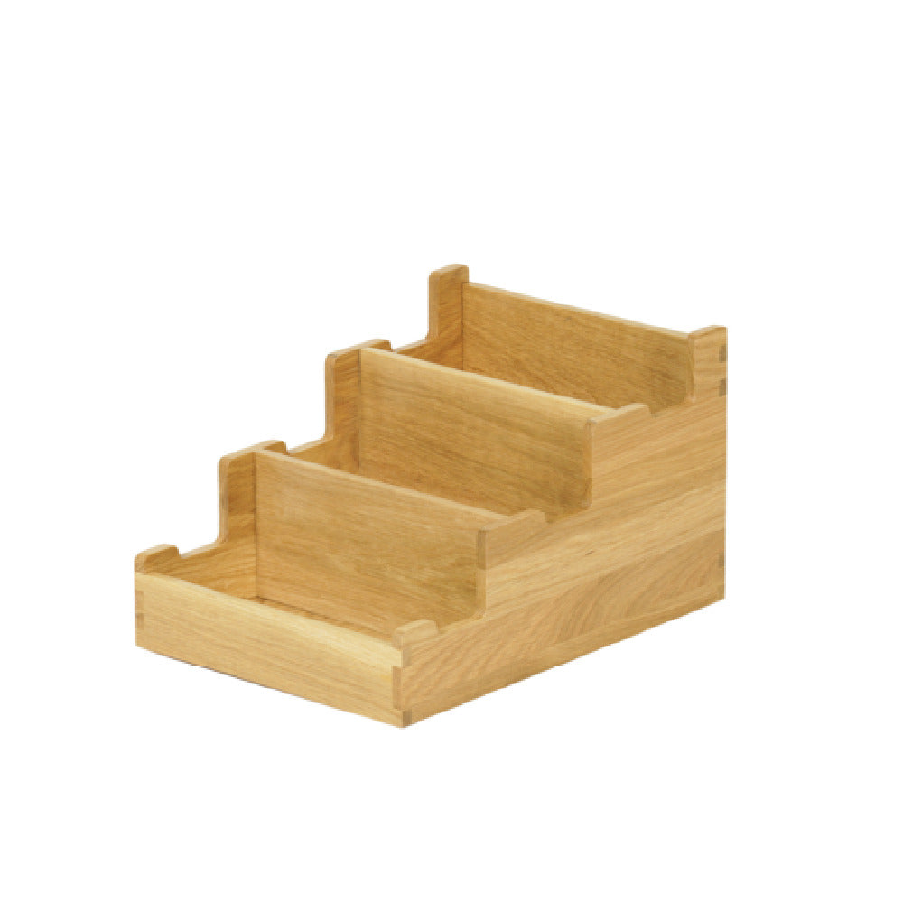 The Sydney Serving Flatware Holder is engineered for professional kitchen workflows, providing three separate compartments to segregate utensils. Its solid oak construction ensures long-term durability against frequent handling, while the 12" x 10" x 3" dimensions facilitate easy placement in various foodservice setups. The design simplifies access and cleaning, making it suitable for busy service lines and buffet stations, ultimately enhancing workflow efficiency and maintaining organizational clarity during high throughput periods.