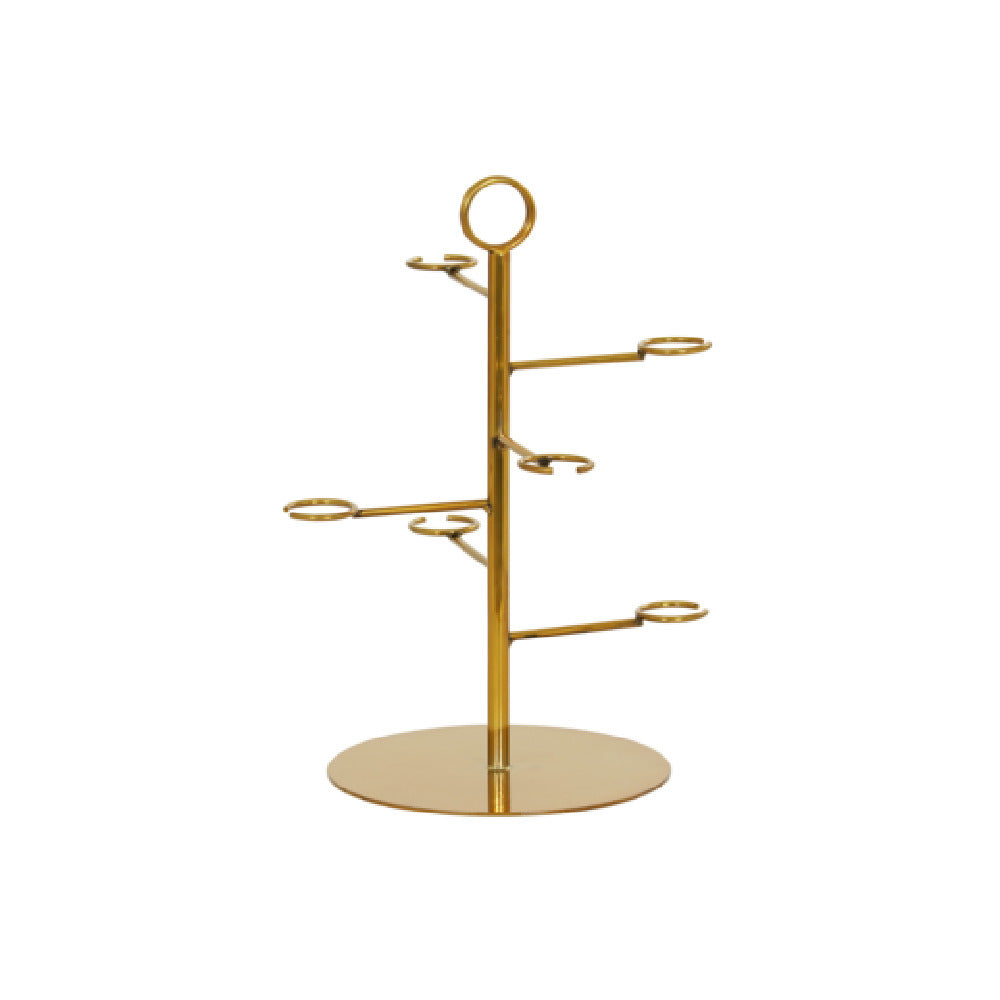 A commercial display stand is a professionally designed fixture used to showcase glassware, products, or decor items in high-traffic foodservice environments. The Cal-Mil Brooklyn Champagne Glass Tower, with its durable metal construction and antique brass finish, is specifically tailored for elegant champagne presentation at bars, hotels, and catering events. With a height of 22 inches and capacity for six glasses, this stand provides a stable, stylish solution for tabletop beverage displays in upscale dining or event settings, optimizing space while enhancing visual appeal in moderate to high-volume hospitality operations.