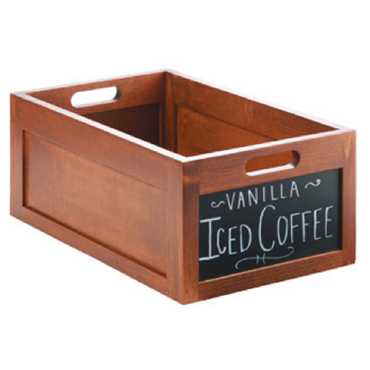 A commercial display and storage crate is a durable container designed for organizing, presenting, and storing food items in hospitality and retail environments. The Cal Mil 3354-12 model exemplifies this category with its wood construction, handles, label area, and integrated polycarbonate bin, suited for versatile use in cafes, catering, or retail settings. It supports efficient workflow by providing clear visibility, ease of transport, and customizable labeling, making it a practical solution for managing perishable or display items in moderate to high-volume foodservice operations, especially where durability and ease of maintenance are essential.