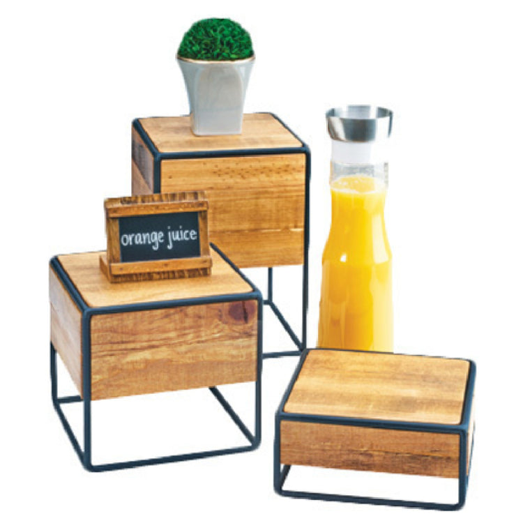 Cal Mil 3562-7-99 8 Inch Rustic Pine Square Display Riser with Black Metal Frame