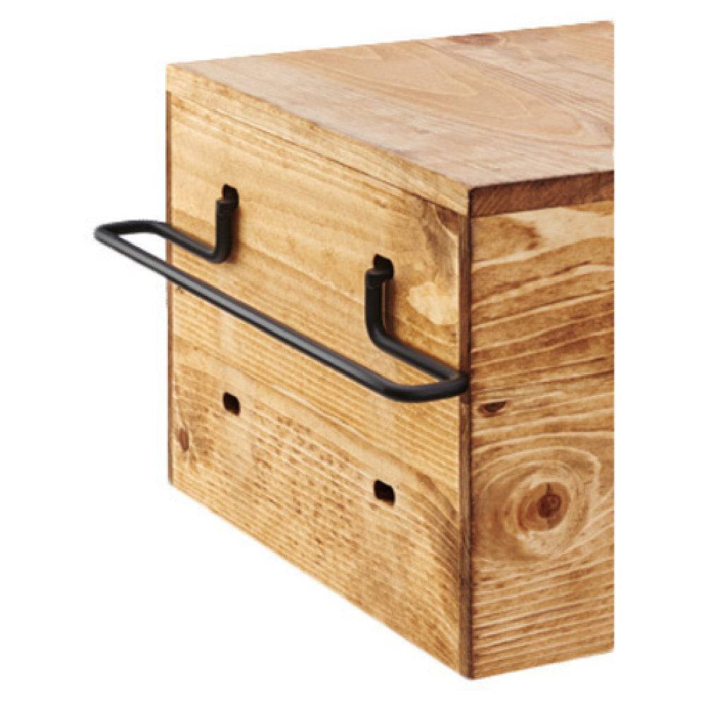 This commercial display riser features a straightforward construction from natural rustic pine, with dimensions of 12 inches in width, 12 inches in depth, and 7 inches in height. Weighing 17 pounds, it supports moderate product weight while maintaining portability. The unit's slotted brackets allow for flexible mounting or flipping, enabling users to transition from riser to crate effortlessly. Its simple design facilitates easy cleaning and maintenance, with no complex electrical or refrigeration components involved. The material's resistance to typical kitchen conditions ensures longevity, making it suitable for placement in busy foodservice and retail environments.