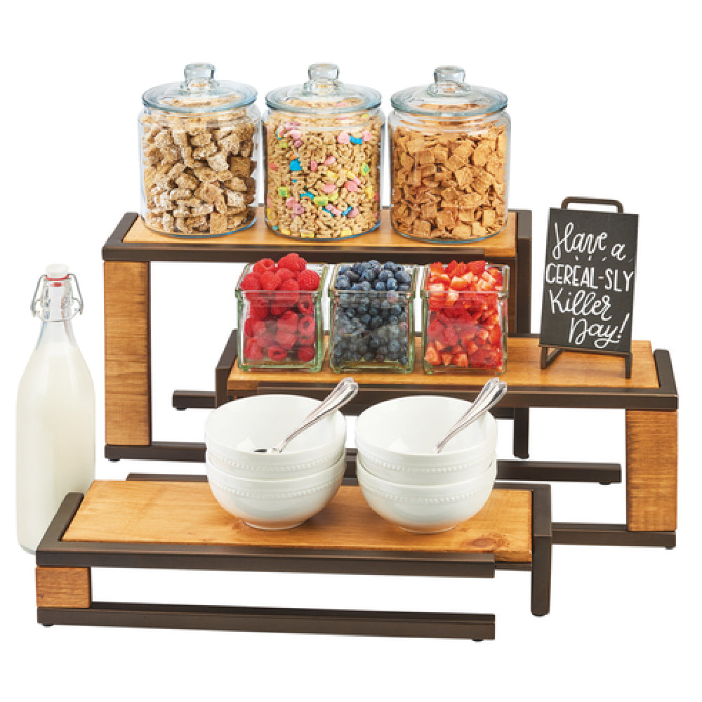 Cal Mil 3901-7-84 stands out among commercial display risers due to its rustic pine and bronze-finished metal frame, providing a durable and attractive presentation platform. Its compact footprint simplifies countertop integration, while the sturdy materials resist daily handling. The design’s straightforward setup and maintenance streamline daily operations, supporting efficient product organization and aesthetic enhancement in hospitality or retail environments.