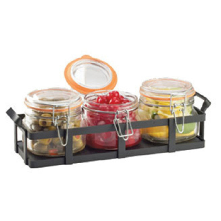 A commercial storage jar is a food-grade container used in professional kitchens, catering, and foodservice operations to store ingredients, spices, or garnishes. The Cal Mil C3335JAR is a glass ingredient canister featuring a hermetic seal, ensuring airtight storage of contents. Its 17 oz. capacity makes it suitable for precise portioning and organized ingredient management. Installed in food prep stations or display counters, this jar supports efficient workflows and ingredient freshness, making it ideal for bakery, restaurant, or catering environments requiring secure, visible storage solutions.