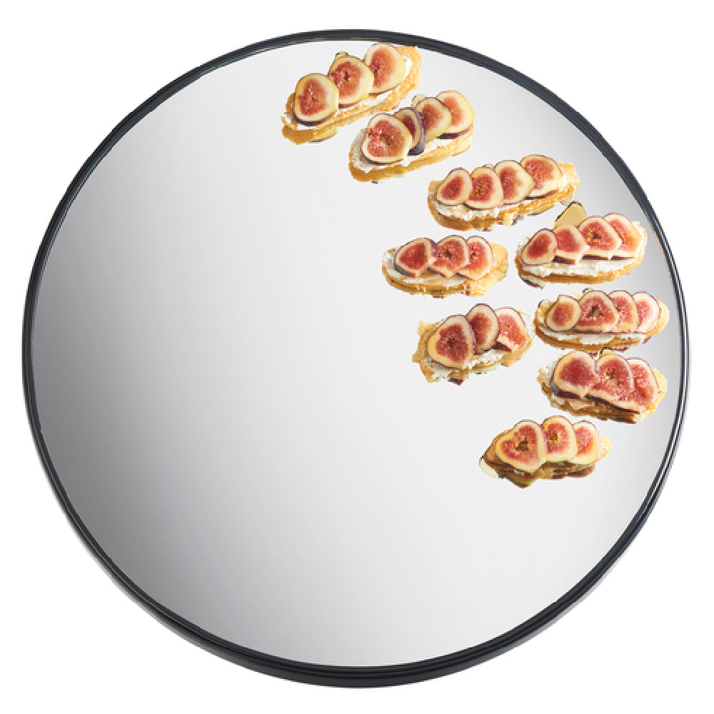 Cal Mil RR240 24 Inch Round Gourmet Display Mirror Tray Glass with Black Trim
