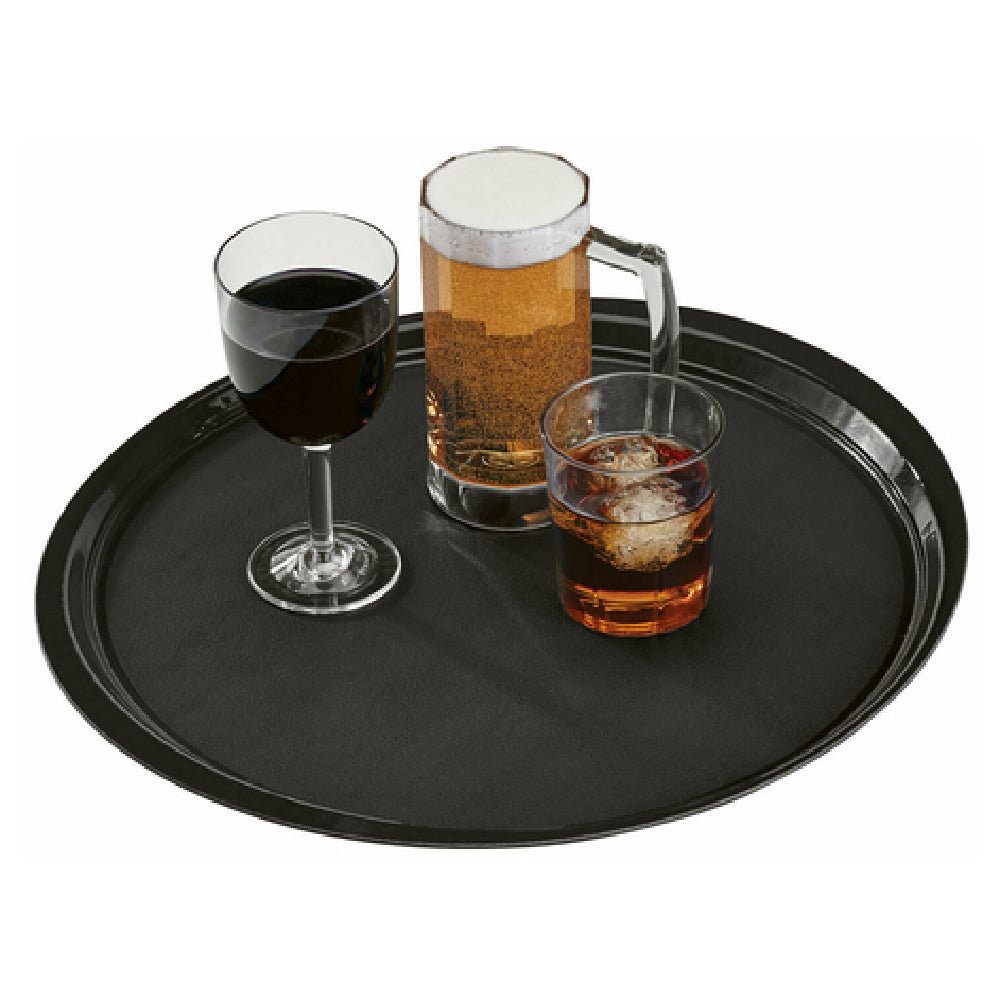 The Cambro 1400ET110 EpicTread™ Tray Round 15-7/20" Diameter is a commercial-grade non-skid serving tray constructed from durable fiberglass, designed for high-volume foodservice operations. This round tray features a 15-7/20" diameter with a black surface and EpicTread™ non-slip textured finish, ensuring stability during transport. Its dishwasher-safe design facilitates easy cleaning, making it suitable for fast-paced environments such as cafeterias, catering services, and self-service stations. With high-quality materials and precise dimensions, this tray optimizes workflow and reduces spillage, providing a reliable solution for professional food presentation and service efficiency.