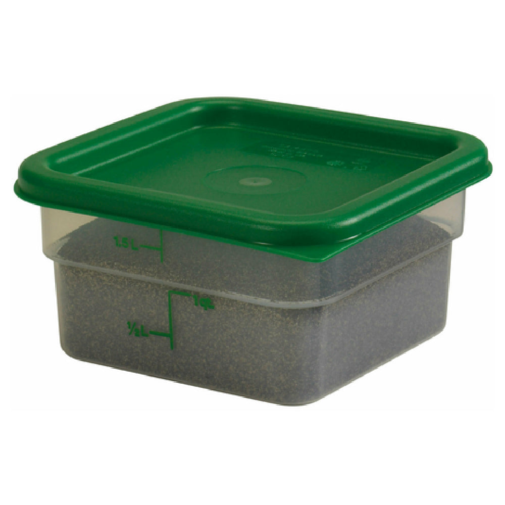 The Cambro 2SFSPP190 CamSquare® Food Container is a professional-grade food storage solution designed for commercial kitchens and foodservice operations. Crafted from durable polypropylene, it features a translucent, square design with green graduation markings for precise portion control and inventory management. With a capacity of 2 quarts and measuring 7-1/4 inches in length and width by 3-7/8 inches in height, this container ensures optimal space utilization and ease of handling. Its dishwasher-safe construction supports efficient cleaning cycles, while its stain and odor resistance maintains product hygiene and presentation. This model is ideal for cold storage applications in restaurants, catering, and institutional settings, providing a resilient and practical solution for high-volume food storage needs.