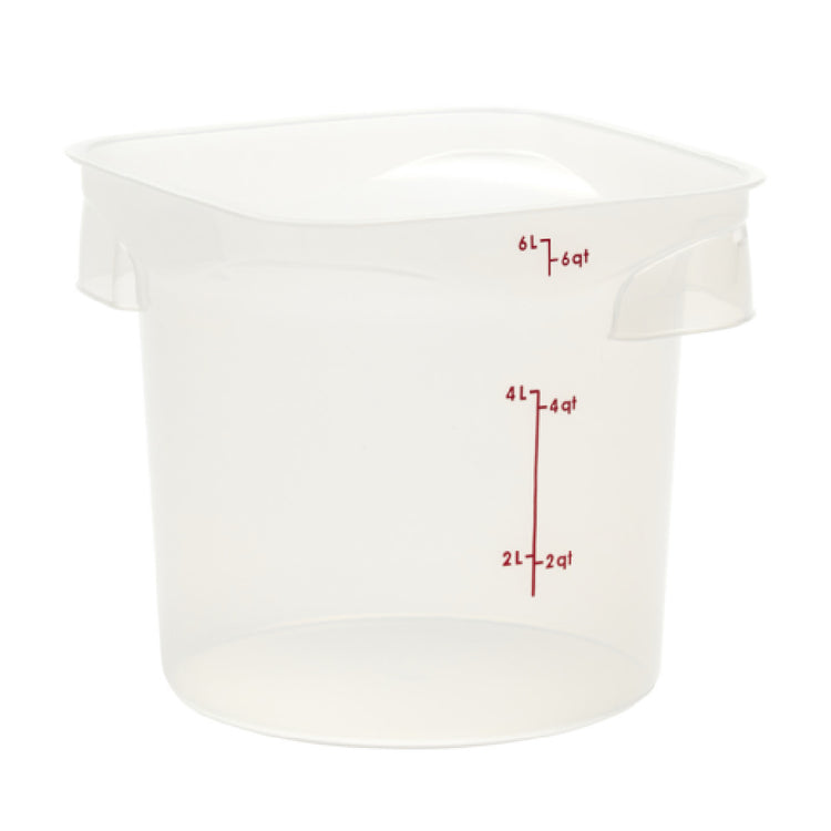 Cambro, 6RFSPROPP190, CamRound® FreshPro Round Food Container, 6 qt., 9"L x 9"W x 8.1"H, red graduation, polypropylene, dishwasher safe, resists stains & odors, translucent, NSF