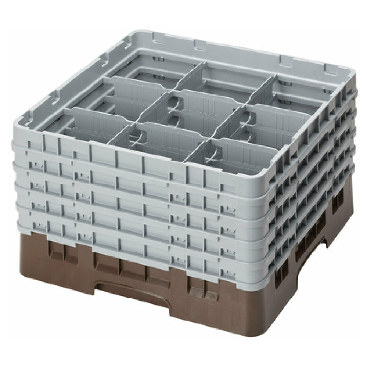 The Cambro 9S958167 Camrack® Glass Rack With (5) Soft Gray Extenders Full Size is a commercial-grade glassware storage solution designed for high-efficiency dishwashing and rack management in foodservice operations. This full-size dishwasher rack measures 19-3/4" x 19-3/4" x 12-1/8" and features nine dedicated compartments with a maximum glass diameter of 5-7/8 inches and height up to 10-1/8 inches, optimized for holding and drying glassware in busy kitchen environments. Crafted from durable materials and engineered for reliable performance, this rack simplifies warewashing workflows while ensuring proper containment and organization.*