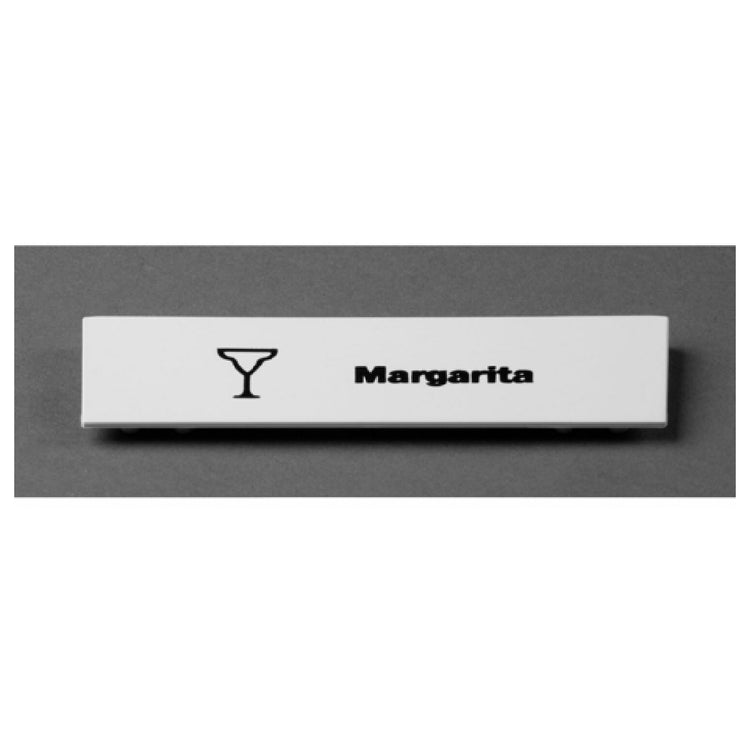 The Cambro CECMG6000 Camrack® Extender ID Clip is a durable accessory designed for commercial dishwasher rack organization. Crafted from impact-resistant ABS plastic and measuring 5 inches in length by 1-9/16 inches in height, it snap-on securely onto all Camrack® units. Its primary function is to facilitate clear identification of racks, thereby enhancing workflow efficiency and reducing misplacement in busy foodservice environments. This model features a pre-printed "Margarita" label for quick recognition, making it suitable for high-volume kitchen operations requiring precise rack management.