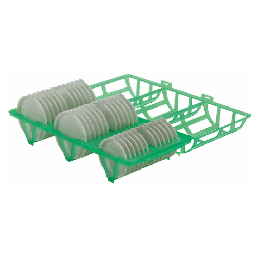 This specialty smallwares rack offers a compact yet sturdy design optimized for reusable lid storage, with dimensions tailored for efficient stacking and quick access. Its high-impact, food-safe polymer construction guarantees durability against frequent washings and typical kitchen wear. The flexible Kelly green finish enhances visibility and organization within busy storage areas, reducing handling time. Designed for ease of cleaning, it supports ergonomic workflows and minimizes cross-contamination risks while maintaining stability during transport and storage. With its standardized size, it fits seamlessly into vertical and bench-mounted configurations, streamlining kitchen operations.