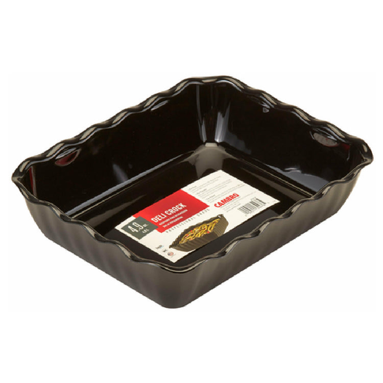 The Cambro DC10110 deli crock is constructed from SAN plastic, offering impact, stain, break, and chip resistance, with a capacity of 4.9 quarts. Its dimensions are 13-3/16" long by 10-7/16" wide, with a height of 3.19". The unit weighs just 1.15 lbs and features a classic black finish. It operates without electrical requirements and is designed for ease of cleaning with dishwasher-safe materials. The product's NSF certification underscores its suitability for food contact and commercial kitchen sanitation standards. Its size allows seamless integration into countertop setups or refrigerated storage with adequate airflow, while its impact-resistant construction withstands rigorous daily handling. The crock’s precise dimensions and durable material support efficient workflow in food prep, display, or storage areas.