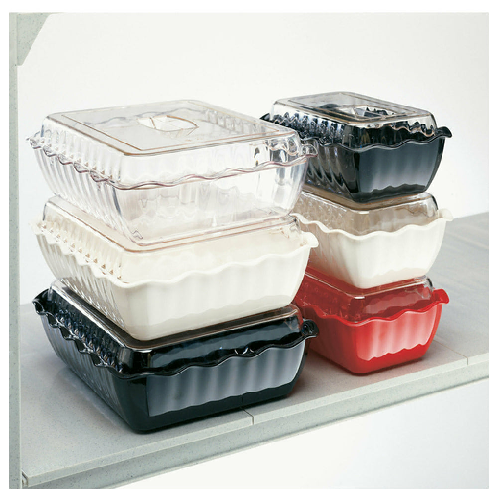 The Cambro DC5404 Deli Crock provides a combination of impact and stain resistance with durable SAN material, ideal for high-traffic food prep and presentation areas. Its rectilinear shape simplifies stacking and storage, while the scalloped pattern enhances visibility and access. Designed for ease of cleaning, it supports efficient workflow in mid-volume buffet lines and catering setups. The container's precise dimensions and lightweight design (0.67 lbs) ensure seamless integration into existing stations. Its size and impact-resistant properties make it a reliable choice for maintaining food hygiene and presentation quality during fast-paced foodservice operations.