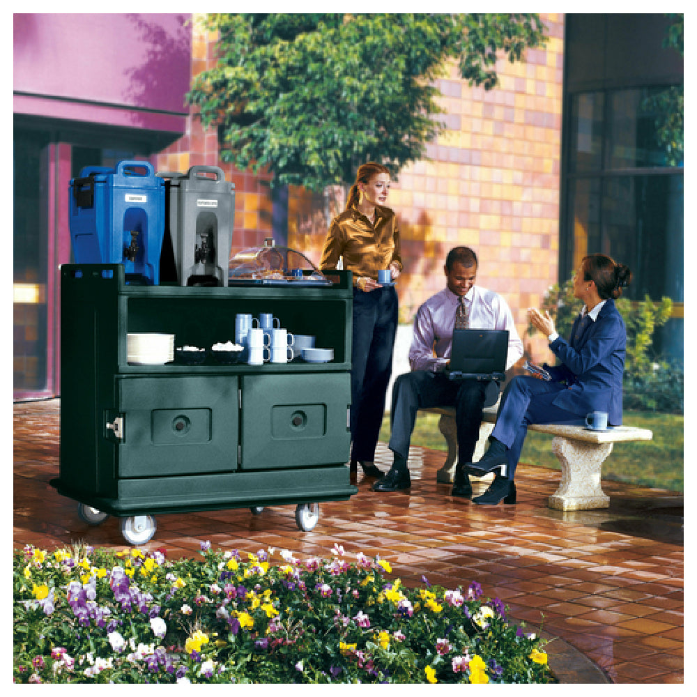 A commercial beverage cart is a mobile service unit designed for efficient beverage transportation, presentation, and storage within foodservice and hospitality venues. The Cambro MDC24F192 is an example equipped with insulated compartments and a durable polyethylene body, making it ideal for moderate-volume hospitality settings such as hotels, catering events, and banquet facilities. This unit facilitates organized beverage service with temperature-sensitive components, providing a reliable solution for professional environments that demand durability, mobility, and ease of cleaning. Its features support streamlined workflows, secure storage, and quick access to beverages, contributing to effective service in busy commercial kitchens and event spaces.