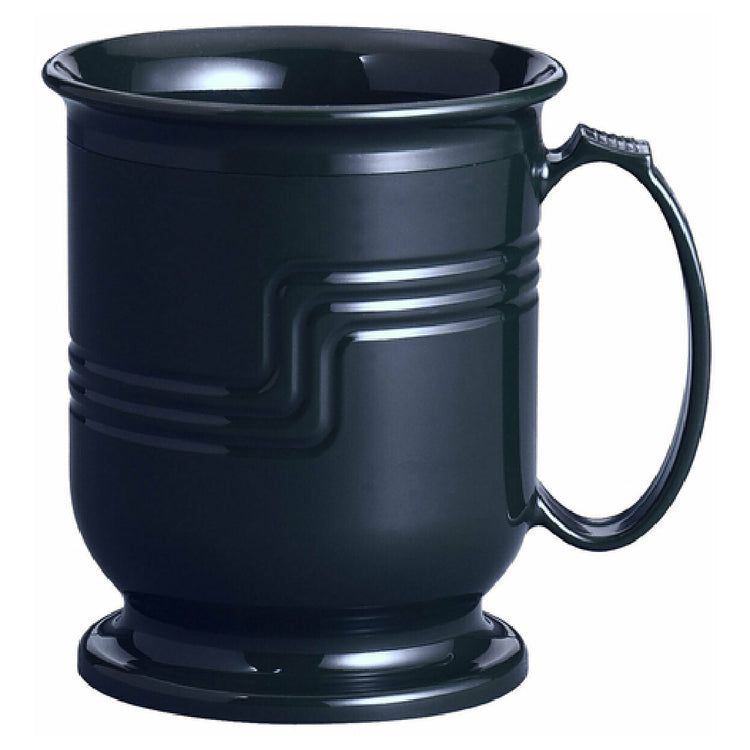 The Cambro MDSM8110 The Shoreline Collection Mug is a professional-grade 8 oz. plastic beverage container designed for commercial foodservice environments. Made from durable polypropylene, this mug features a 4-1/2" outside diameter and a 4" height, with an integrated handle for ease of use. Its dishwasher-safe construction and black finish make it suitable for high-volume plateware and drinkware applications, particularly in institutional dining, hospitality, and catering settings. The product's technical specifications support reliable, repeated use, ensuring sanitation and operational efficiency in busy foodservice operations.