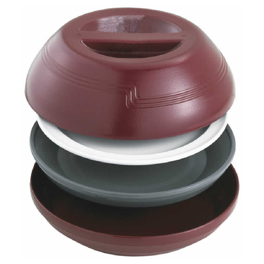 The Cambro MDSP9477 Thermal Pellet Base and Underliner features a 9-1/2-inch outside diameter, 1-3/4-inch height, and weighs 2.52 lbs. It is constructed from durable, food-safe plastic with NSF approval, ensuring compliance with sanitation standards. The unit is designed for use with compatible containers, providing thermal insulation to maintain food temperatures during transport or display. Its impact-resistant material endures frequent cleaning and handling in high-volume foodservice settings. The dimensions facilitate snug fitting and stability, supporting efficient workflow in catering, buffet, or countertop applications. Operating within temperature ranges suitable for food service, it offers a reliable solution for thermal presentation and transport needs.