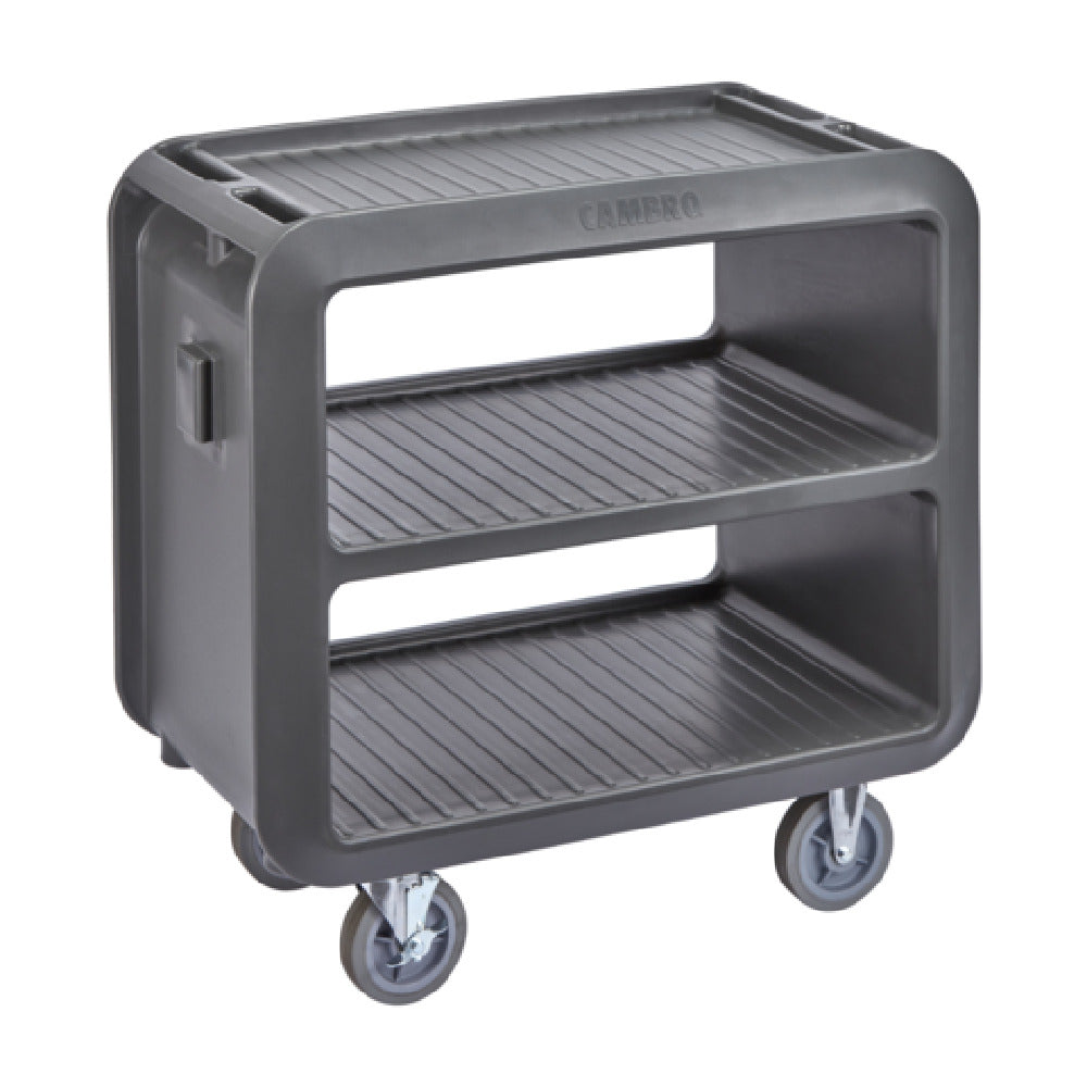 The Cambro SC230S131 Service Cart Pro is a durable and versatile commercial utility and bussing cart designed for demanding foodservice environments. Built with a resilient polyethylene construction, this medium-sized service cart measures 37-1/2 inches in length, 22 inches in width, and 37-1/4 inches in height, offering a practical solution for mobile transportation of supplies. Its three ribbed solid shelves support up to a combined total weight capacity of 600 pounds (200 pounds per shelf), making it suitable for high-capacity catering, cafeteria operations, and kitchen service workflows. The open-sided design facilitates easy access and cleaning, while the dark brown finish complements a variety of commercial kitchen aesthetics. This NSF-listed cart is engineered for longevity, ease of maintenance, and reliable performance in fast-paced foodservice settings.