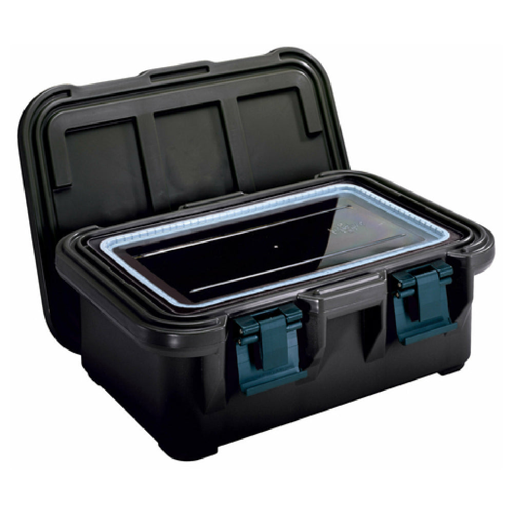 Cambro, UPCS160110, S-Series Ultra Pan Carriers®, top loading, holds (1) GN full size or fractional pans up to 6" deep, approximate capacity 20 qt., retention: hot for up to 4 hours (190° - 179° F) & cold for up to 4 hours (33.9° - 35.8° F), (4) EZ grip molded-in handles, (4) nylon latches, built-in gasket, self venting design, stackable with MPC Camcarriers and UPC Ultra Pan Carriers, dishwasher safe, polyurethane foam insulation, polypropylene construction, black, NSF