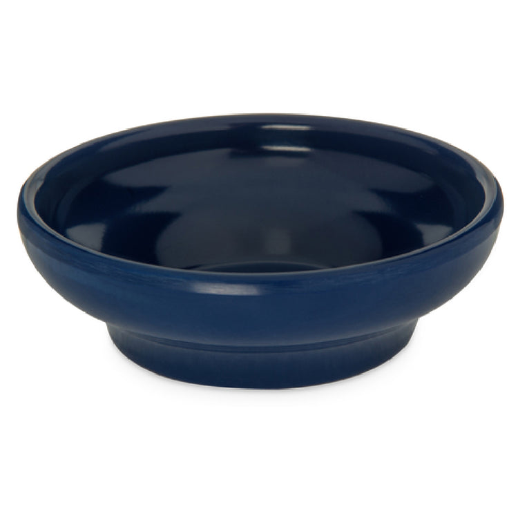 The Carlisle 087560 Carlisle Salsa Dish 5 Oz. 4-1/8" Diameter is a durable, dishwasher-safe plastic sauce dish designed for high-volume foodservice operations. Crafted from melamine, this round blue dish offers stain resistance and temperature tolerance up to 212°F. Ideal for portioning condiments, dips, or sauces in busy restaurants, it ensures reliable performance under rigorous commercial use while maintaining a professional presentation. Its stackable design optimizes storage efficiency, making it well-suited for fast-paced kitchen environments requiring consistent, sanitary tabletop service.
