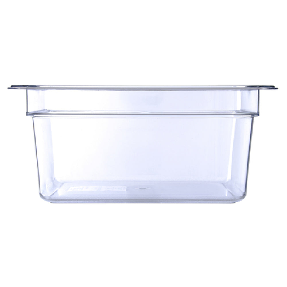 CFS Brands, 10222B07, Carlisle - StorPlus™ Food Pan, 1/2-size, 8.7 qt. capacity, 12-3/4" x 10-19/50" x 6" deep, capacity indicators, easy-lift notch, reinforced corners, temperature range: -40° - 212° F, chip/crack-resistant, stackable, textured non-slip finish, dishwasher safe, polycarbonate, clear, NSF, Made in USA