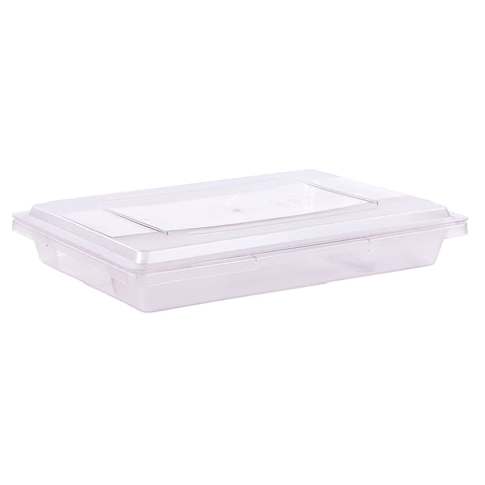 The Carlisle 1062707 Carlisle StorPlus™ Food Storage Lid is a commercial-grade polycarbonate cover designed to fit 26" x 18" containers, commonly used in foodservice establishments for effective storage and preservation. Engineered by CFS Brands, this lid features reinforced corners to withstand rigorous handling, lock-tight edges for secure stacking, and reversible functionality that allows use as a bun pan or tray. Its clarity enhances visibility, facilitating inventory management, while the textured non-slip finish ensures safety during handling. This NSF-rated, dishwasher-safe lid is built for durability and consistent performance in busy kitchen environments, making it ideal for high-volume food storage applications.