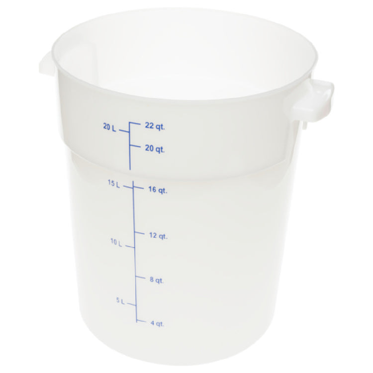 CFS Brands, 1097902, Carlisle - StorPlus™ Food Storage Container, 22 qt., round, molded-in capacity indicators, with handles, polycarbonate, white, NSF, Made in USA