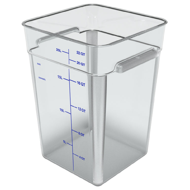 The Carlisle 11956AF07 Carlisle Squares Food Storage Container is a high-capacity, commercial-grade polycarbonate storage solution designed for precise food preservation and organized workflow in foodservice operations. With a 22-quart capacity, this square container measures 11-1/8 inches in width and 15-3/4 inches in height, offering efficient space utilization in restaurant, cafeteria, or catering settings. Its reinforced stacking lugs enhance durability and stability during storage or transport, while printed measurements facilitate accurate portioning. Dishwasher safe and made in the USA, this container ensures sanitation and longevity in demanding commercial environments.
