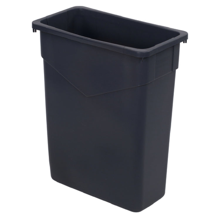 The Carlisle Trimline™ Waste Container is engineered with a 24.75-inch height, 10.95-inch width, and 20.03-inch depth, providing a compact yet ample 15-gallon capacity for waste collection. Crafted from heavy-duty polyethylene, it offers excellent impact resistance and longevity in demanding environments. The container weighs approximately 1.43 pounds and features a gray color finish for neutral integration into various interior decors. No liner is included, and it does not have a lid, facilitating quick waste disposal. Its dimensions and material composition meet typical commercial standards for indoor waste receptacles, supporting a consistent workflow in hospitality, catering, or institutional kitchens.