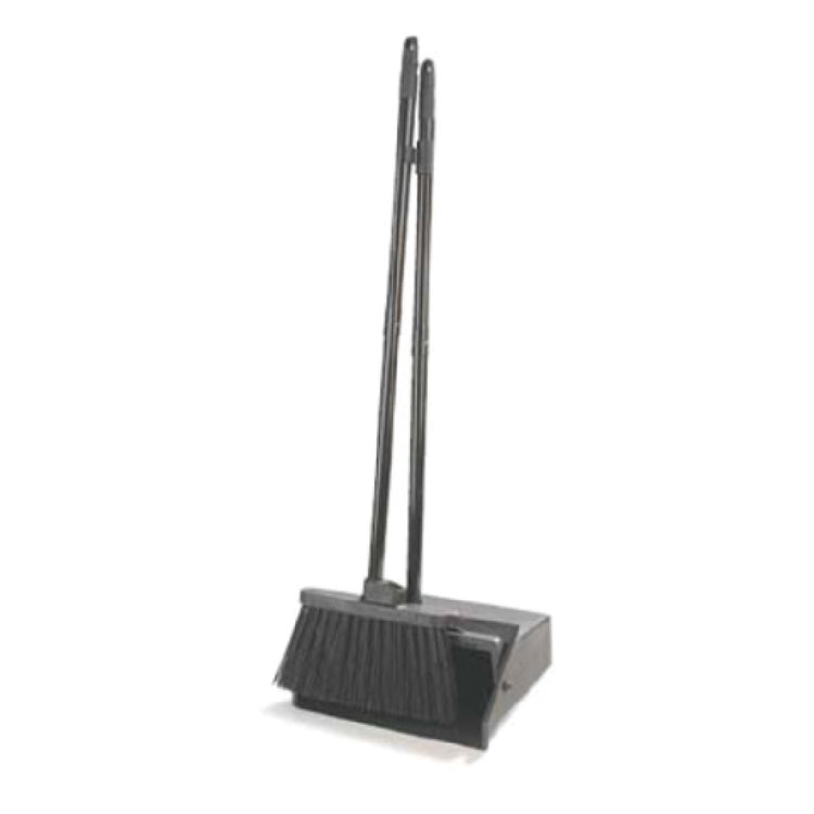 A commercial lobby dust pan & broom set is a professional cleaning system designed for high-volume environments like foodservice facilities, hospitals, and hospitality venues. It typically features durable materials such as steel and reinforced plastics to withstand frequent use. These sets include a long handle broom and a heavy-duty dust pan with ergonomic and functional features such as locking bail mechanisms and hanging options, like the Carlisle 36141503 model. Optimal for sweeping large areas, these tools support efficient workflow in settings requiring rapid and effective sanitation, such as hotel lobbies and large cafeterias.