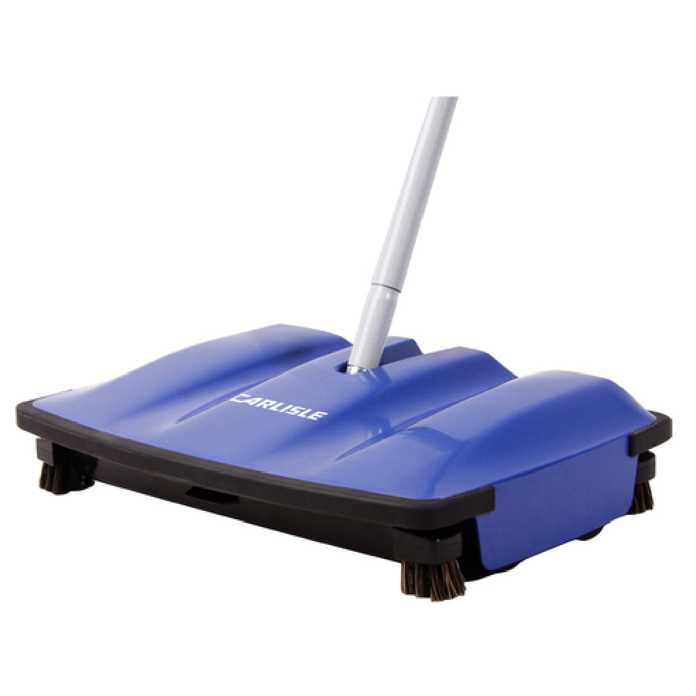 CFS Brands, 3640014, Carlisle - Multi-Surface Duo-Sweeper, 12"W, low-profile, brushless, non-marking rubber blades, large capacity dust bin, ergonomic swivel steel handle, non-marking wheels and bumpers, ABS-plastic, blue