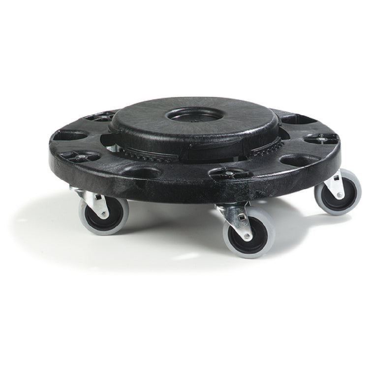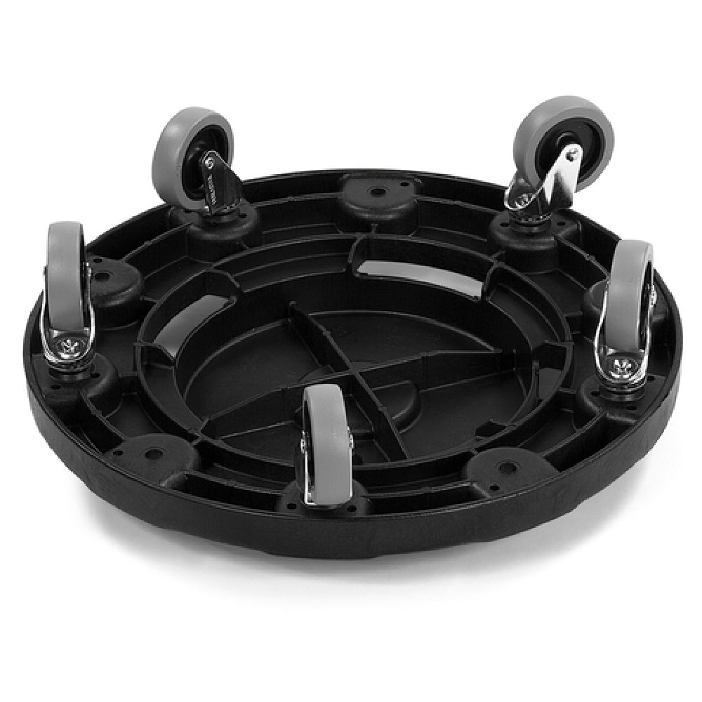 CFS Brands, 3691103, Carlisle - Bronco™ Container Dolly, round, 6"H x 17-3/4" dia., twist-to-lock, non-marking 3" swivel press-fit casters, fits 20,32,44 & 55 gal containers, polyethylene, black, NSF