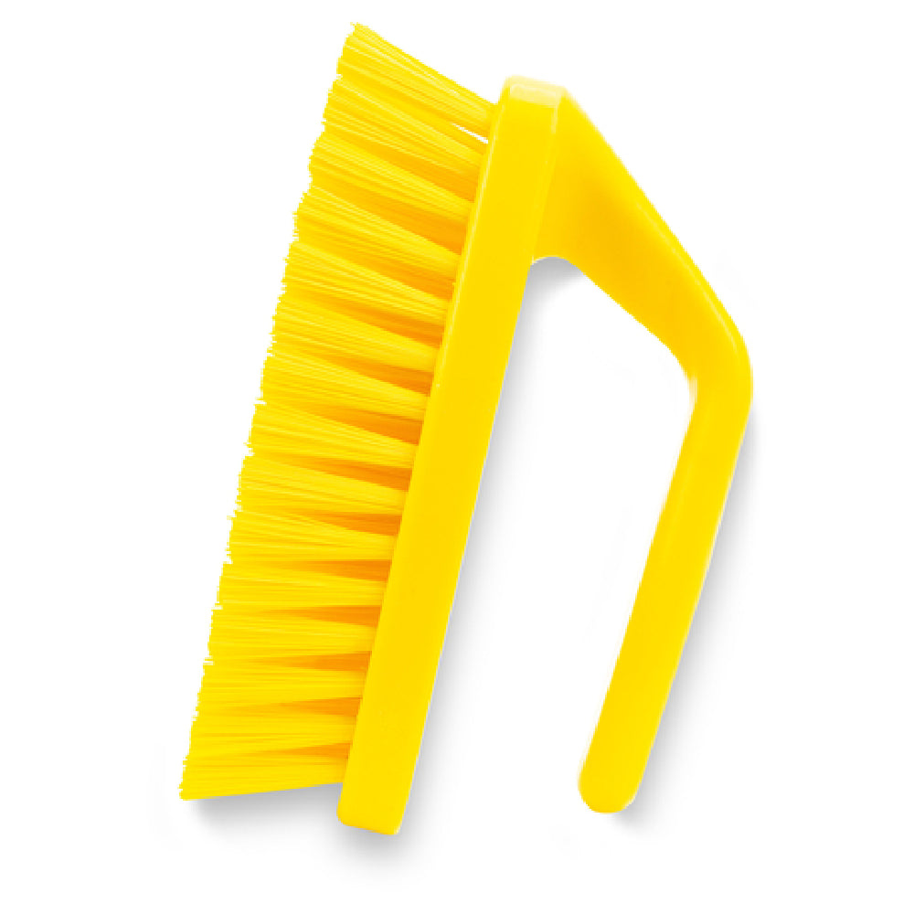 The Carlisle 40024EC04 Carlisle Sparta® Bake Pan Lip Brush is a professional-grade cleaning tool designed for commercial kitchens and foodservice environments. This 6-inch brush features polyester bristles suited for precise application and cleaning of bake pan lips, with a foam injected plastic iron shape handle that offers durability and ergonomic comfort. Engineered for high-volume bakery operations, it provides effective scrubbing with minimal material degradation, ensuring long-lasting performance during frequent use. Its technical specifications include a polyester bristle diameter of 1-1/4 inch and a vibrant yellow finish, making it easy to identify in busy culinary workflows. This tool optimizes sanitation routines and maintains hygienic standards in food preparation areas, while its specialized design facilitates thorough cleaning of narrow or hard-to-reach pan edges, contributing to efficient workflow management.
