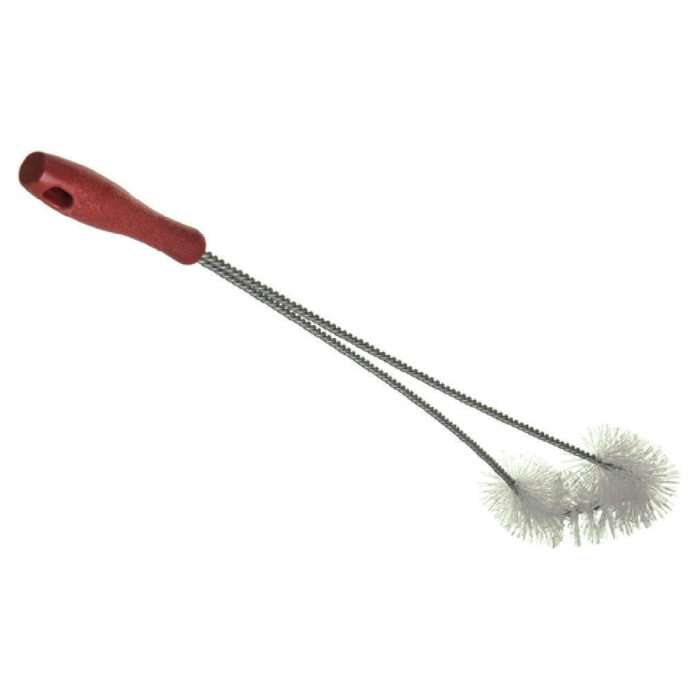 The Carlisle Sparta® Fryer Brush model 4011205 features a sturdy stainless steel wire construction with a 24-inch length, optimized for reaching inside large fryer tanks. Weighing just 0.58 lbs, it offers manageable handling during extensive cleaning routines. The stiff Teflon® wire wound bristles, with a diameter of 2 inches, are engineered for durability and chemical resistance, supporting daily use in high-temperature applications up to 500°F. The red plastic handle provides a heat-resistant, cool-touch grip, enhancing safety and ergonomic comfort. This tool is compatible with standard commercial kitchens that require robust, reliable fryer cleaning equipment, and its hanging hole facilitates organized storage to improve workflow efficiency.