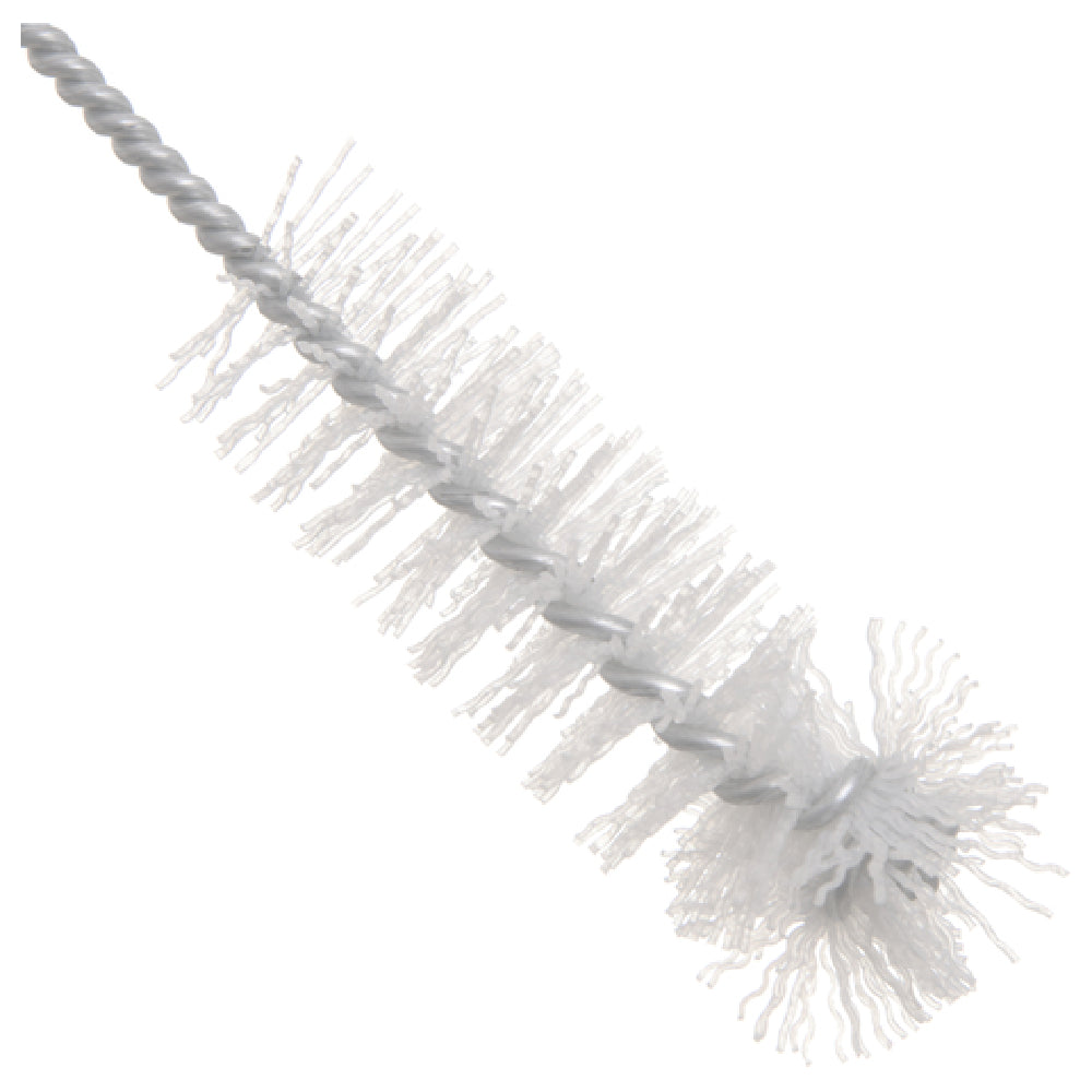 The Carlisle Spectrum® Dispenser Plunger Brush, model 4015600, is a professional-grade cleaning tool designed specifically for beverage dispensing systems in commercial kitchens. This 10-1/2" long brush features wire-wound polyester bristles with a diameter of 1" and a length of 10". Its rose-bud tip and looped end facilitate thorough cleaning of dispensing components, while the twisted wire handle provides durability and ease of handling. Made from BPA-free materials, this brush is optimized for use in high-volume foodservice environments, offering effective debris removal and sanitation of beverage lines, ensuring compliance with sanitation standards.