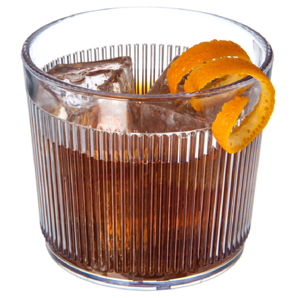 The Carlisle 402907 Carlisle Crystalon® Stack-All® Old Fashioned Tumbler 9 Oz. (9.60 Oz Flush Fill) is a high-performance plastic drinking glass designed for commercial foodservice environments. Manufactured by CFS Brands, this 9-ounce (9.60 oz flush fill) tumbler features a durable SAN plastic construction with a clear finish and ribbed texture for enhanced grip. It is engineered to withstand daily dishwasher cycles and resist staining, breaking, and chipping, ensuring long-term usability in busy service settings. Its stackable design optimizes storage efficiency, while its temperature range of 0°F to 180°F makes it suitable for a variety of beverage applications. This product offers a combination of technical resilience and functional simplicity, making it ideal for hospitality, beverage service, and casual dining establishments requiring durable, reusable drinkware with a professional appearance.