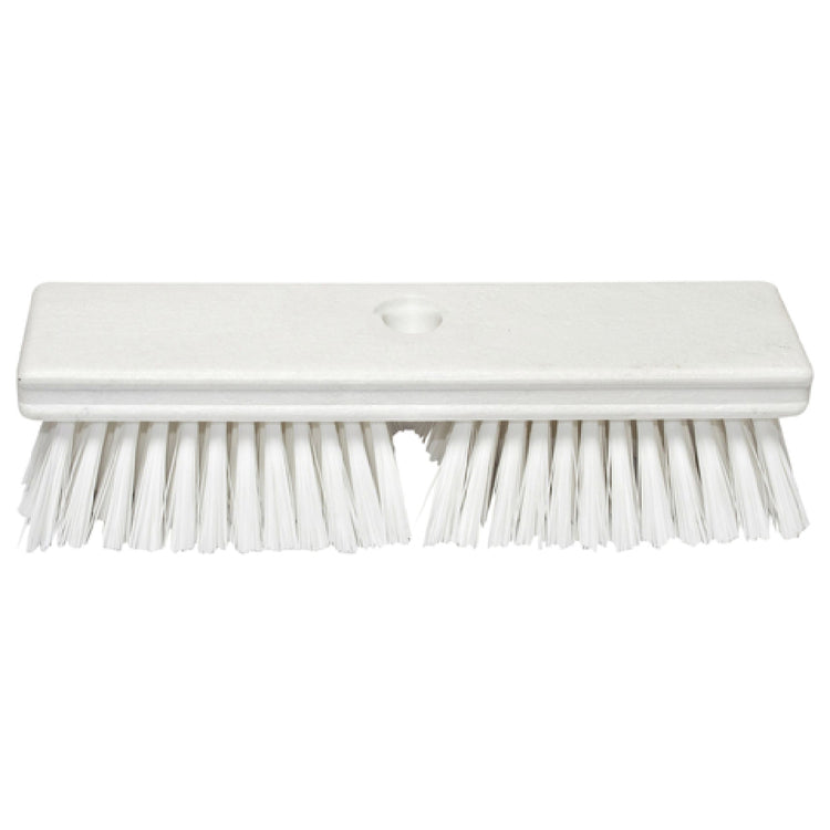 The Carlisle 41722EC03 Carlisle Sparta® Deck Brush offers a resilient cleaning solution with a 10-inch wide plastic block for durability, medium polyester bristles for effective scrubbing, and a threaded hole for easy handle attachment. Designed for commercial foodservice use, it withstands frequent cleaning cycles, reducing downtime. The non-absorbent construction facilitates quick rinsing and sanitization, supporting hygiene standards in busy kitchens. Its ergonomic design promotes ease of use, aiding in extensive floor cleaning routines, especially in high-use environments such as cafeterias and dishwashing stations.