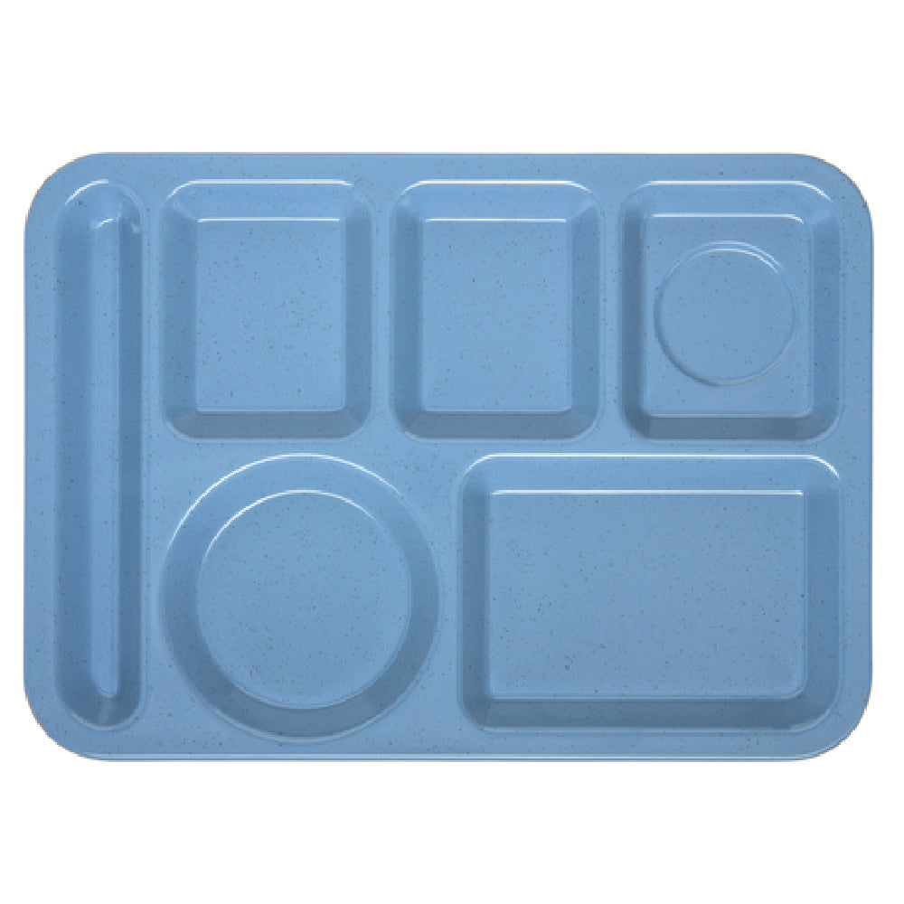 The Carlisle 4398192 Carlisle Compartment Tray 14"L X 10"W Left-handed is a durable, commercial-grade plastic compartment tray designed for high-volume foodservice operations. Constructed from melamine with a blue finish, this rectangular tray features six precisely engineered compartments—three small upper, two large lower, and one designated for flatware—optimizing portion organization and workflow efficiency. It measures 14 inches in length and 10 inches in width, with a height of 0.72 inches and a weight of just 1.08 pounds, making it suitable for various food prep and plating tasks in busy kitchens and cafeteria settings. Its stain, scratch, and break-resistant surface ensures longevity and ease of maintenance, while dishwasher compatibility facilitates swift cleaning. The tray’s precise dimensions and compartment configuration support consistent portion control and service speed in commercial environments.