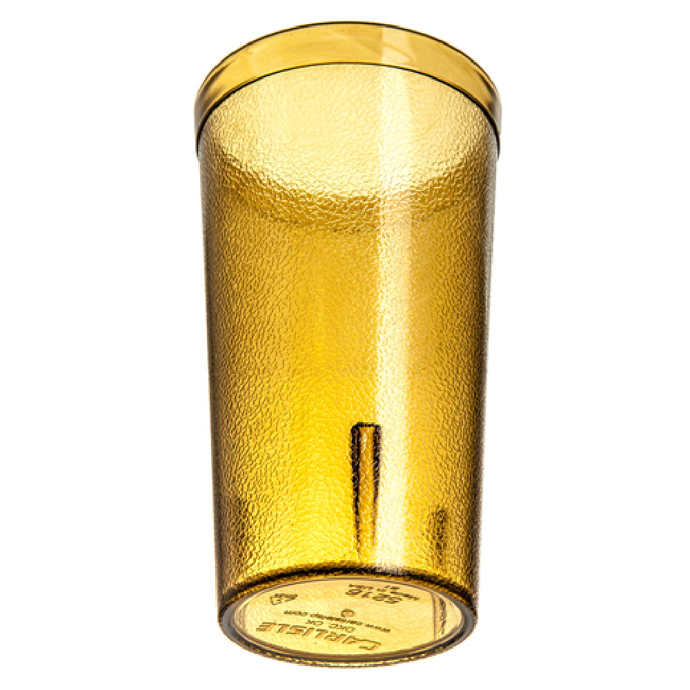 The Carlisle 521613 Carlisle Stackable™ Tumbler 16 Oz. (17.70 Oz. Flush Fill) is a high-performance, commercial-grade foodservice tumbler designed for durable, reusable use in various hospitality environments. Crafted from SAN plastic, this amber tumbler features a tapered design and textured exterior to enhance grip and resistance to staining, breaking, and chipping. With a generous 16 oz. capacity, capable of a flush fill volume of 17.70 oz., it is optimized for beverage service in busy cafes, restaurants, and institutional kitchens. Its dishwasher-safe construction ensures quick and thorough cleaning, supporting efficient workflow and sanitation standards. Made in the USA, this stackable tumbler combines functional capacity with environmental considerations through recyclability, making it an ideal solution for professional beverage dispensing and customer service operations.
