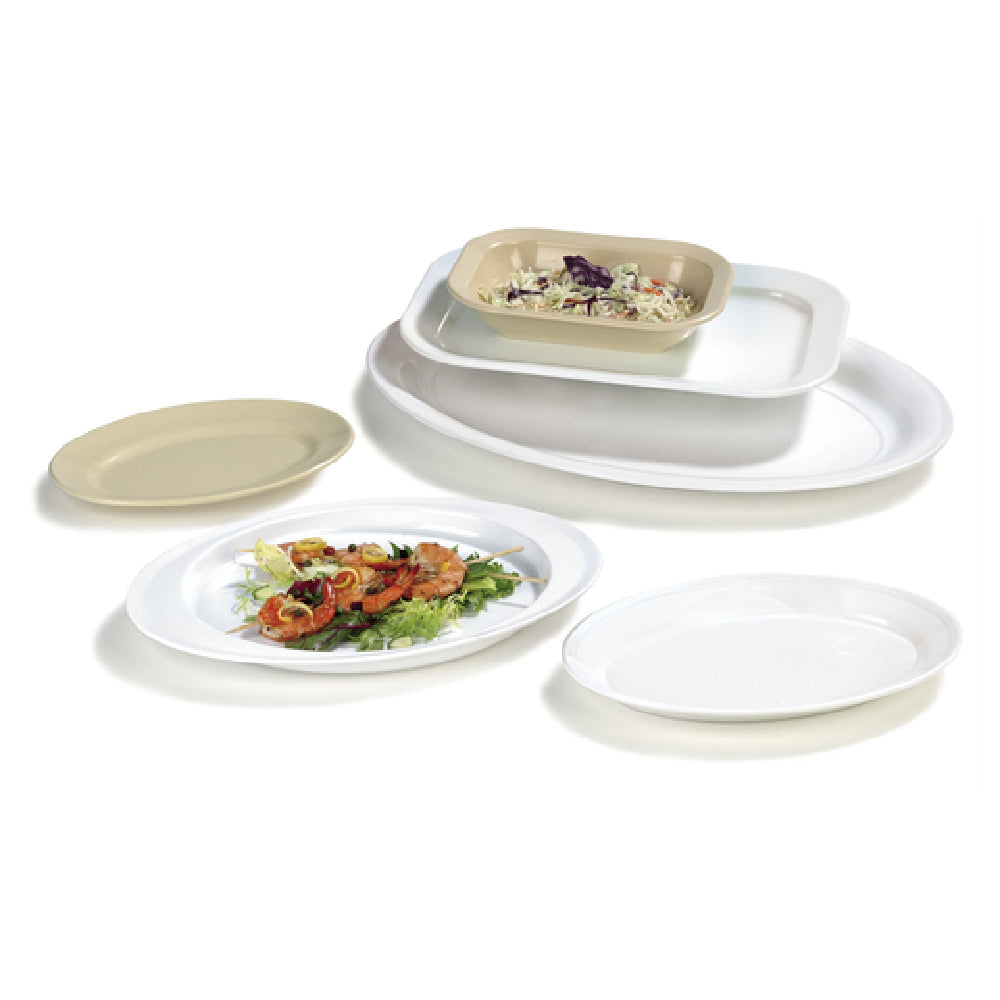 Designed for moderate-volume restaurant and cafeteria operations, the Carlisle ARR12002 plastic oval platter features premium melamine construction for durability and sanitation. Its precise dimensions support efficient food presentation, while its stackable form enhances storage convenience. Built for casual dining environments, this product reliably withstands daily use, simplifying sanitation routines and ensuring consistent quality in institutional kitchens and catering settings.