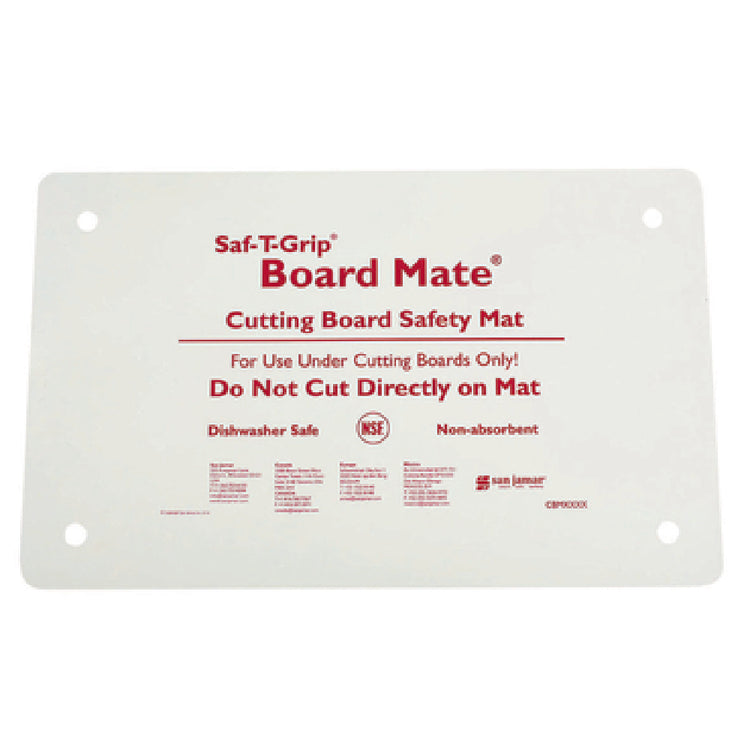 The Carlisle CBM1016 San Jamar Cutting Board-Mate® is a commercial-grade accessory designed to stabilize 10" x 16" cutting boards in professional foodservice environments. Crafted from durable, non-absorbent synthetic rubber, it prevents slipping during food prep tasks, enhancing operator safety and workflow efficiency. Its dishwasher-safe construction ensures easy cleaning, while its NSF certification confirms compliance with industry standards. Key specifications include a size of 10" x 16" with a weight of 0.73 lbs, optimized for countertop installation in busy kitchens requiring reliable grip and hygiene maintenance.