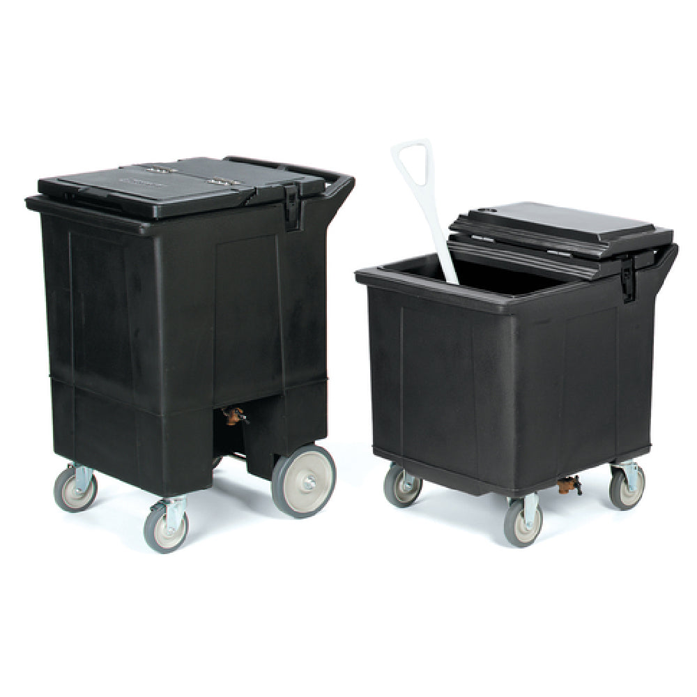 The Carlisle IC225003 Carlisle Cateraide™ Mobile Ice Caddy is an industrial-grade ice storage and transportation solution designed for high-demand commercial foodservice operations. Featuring a 125 lb. capacity, this insulated, polyethylene unit is constructed with stainless steel reinforced hinges on its removable lid, ensuring durability and ease of access. Its integrated front drainage faucet facilitates cleaning and ice removal, while the construction combines stain and scratch resistance with USDA-approved materials suitable for demanding environments. The mobile design with a base-plate-mounted ice bin includes dual handles, perimeter-mounted casters with two 5" rigid and two 5" swivel (one with brake), making this unit ideal for catering, hospitality, and large-scale foodservice venues requiring efficient ice management. Its technical build supports rugged daily use, with dimensions of 28" W x 22.25" D x 28.75" H, and features NSF certification for safety and sanitation standards.